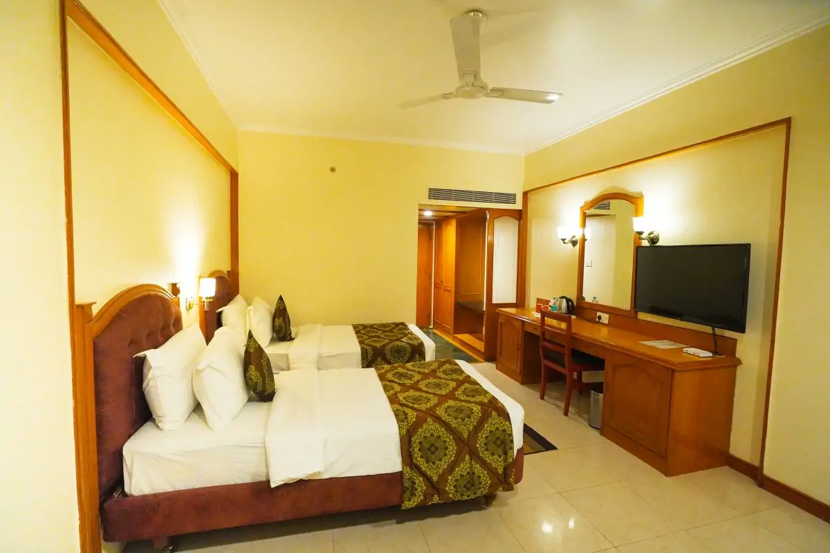 Our dedication to exceptional service has earned us multiple awards from the Tourism Corporation for our outstanding hospitality. Our spacious rooms are uniquely decorated with classic furnishings and are soundproofed to provide comfort and tranquillity, ensuring a restful stay. Guests can enjoy magnificent views of the Tirumala Hills, adding a unique charm to their experience.