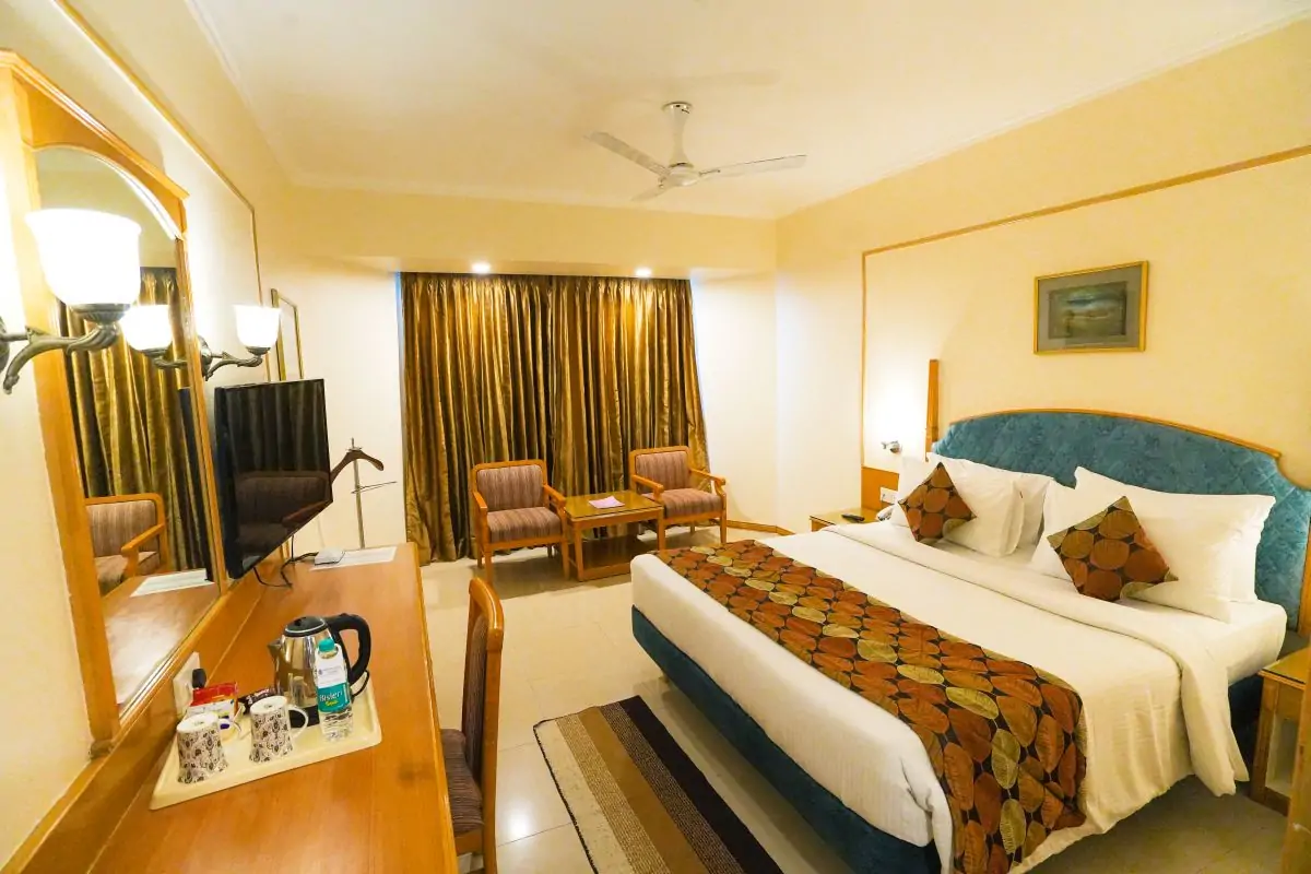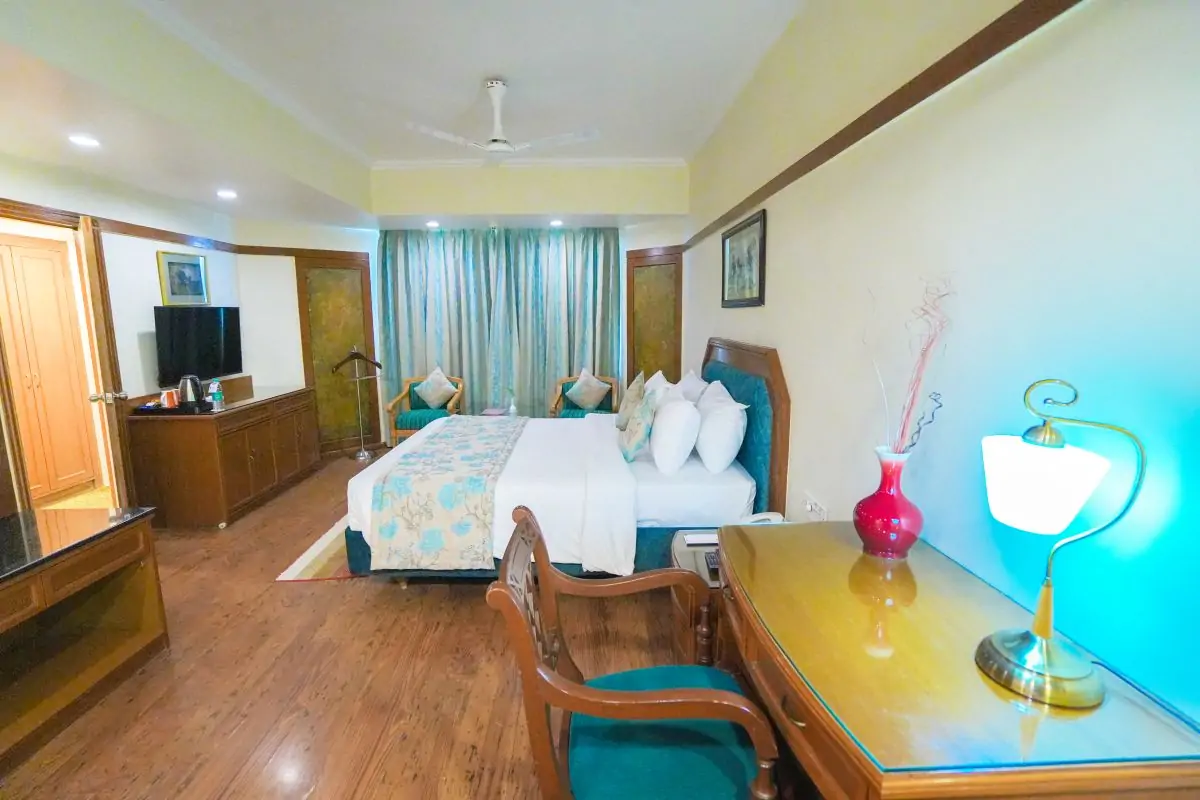 Functionality meets modern simplicity in our spacious Executive Rooms complete with a King size, writing desk and 43 inch flat-screen TV. Guests enjoy Biotique bath products and wireless internet connectivity in the comforts of upscale design.